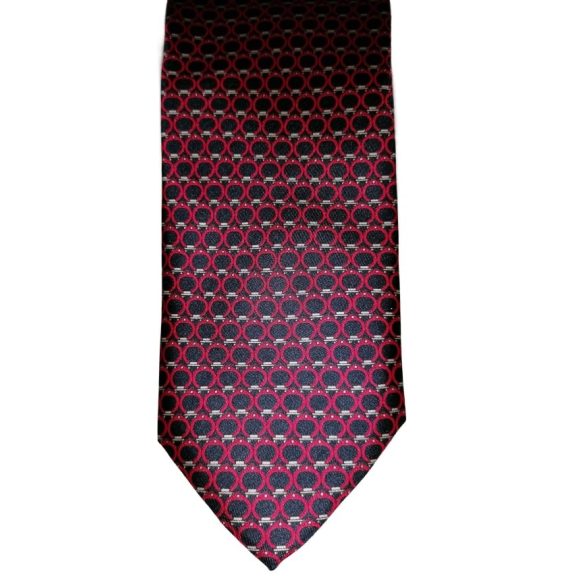 Fekete alapon piros és fehér mintás selyem nyakkendő