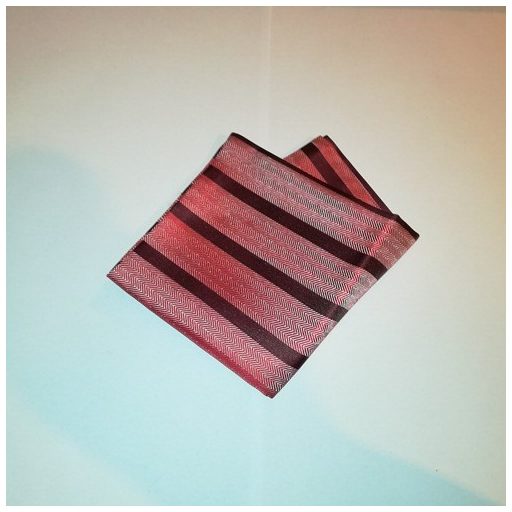 Bordó alapon piros és szürke csíkos selyem díszzsebkendő